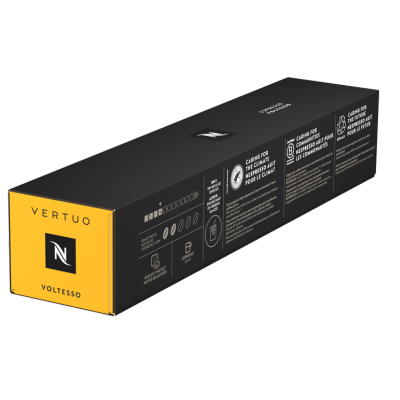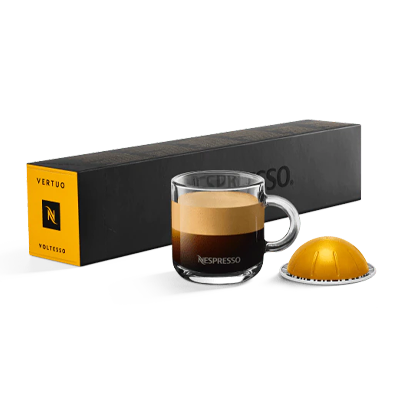 This is Voltesso a light and sweet Vertuo espresso coffee that you might just make your golden standart. This Vertuo coffee pod gets its light, sweet biscuity note from Brazilian Bourbon coffee. We blended in Colombian coffee from the highlands we lightly roasted it to keep that hint of acidity that balances out Vertuo Voltesso. It plays glowingly with the long roasted Brazilian Bourbon coffee that long roast really pulls out the sweet and biscuity notes. Together these Arabica coffees are like a golden standard for a lyrical black coffee.
