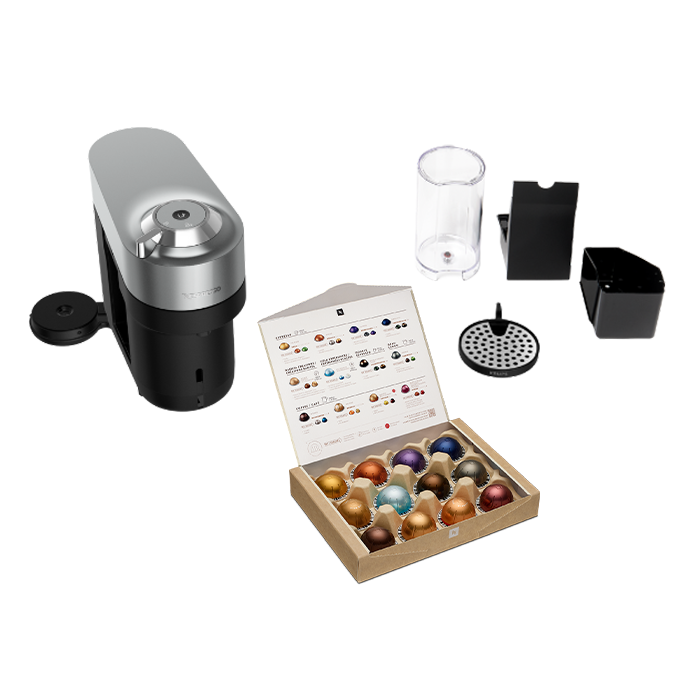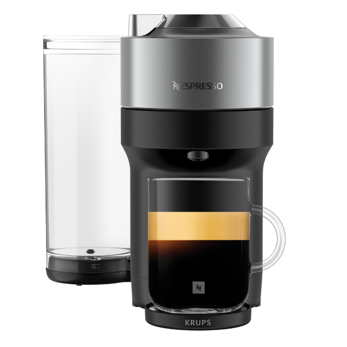 With its sleek design and elegant metallic finishing in Silver, Vertuo Pop+ makes a bold statement to match your style. With five cup sizes, from ristretto (25 ml) to Mug (230 ml) coffee, simply choose your Vertuo capsule, pop it in, and you’re away at the touch of a button. Krups Vertuo Pop+ uses the patented Centrifusion™ Technology that reads the code on each capsule and adjusts the settings to extract the hidden treasures of your coffee. To make your coffee right, every time. The Vertuo Pop+ has a large water tank (1.1 L) accessible from the side. Its adjustable drip tray offers two positions in order to accommodate bigger mugs. All in a compact design, that’s made from 29% recycled plastic. For a coffee journey, with a Pop+.