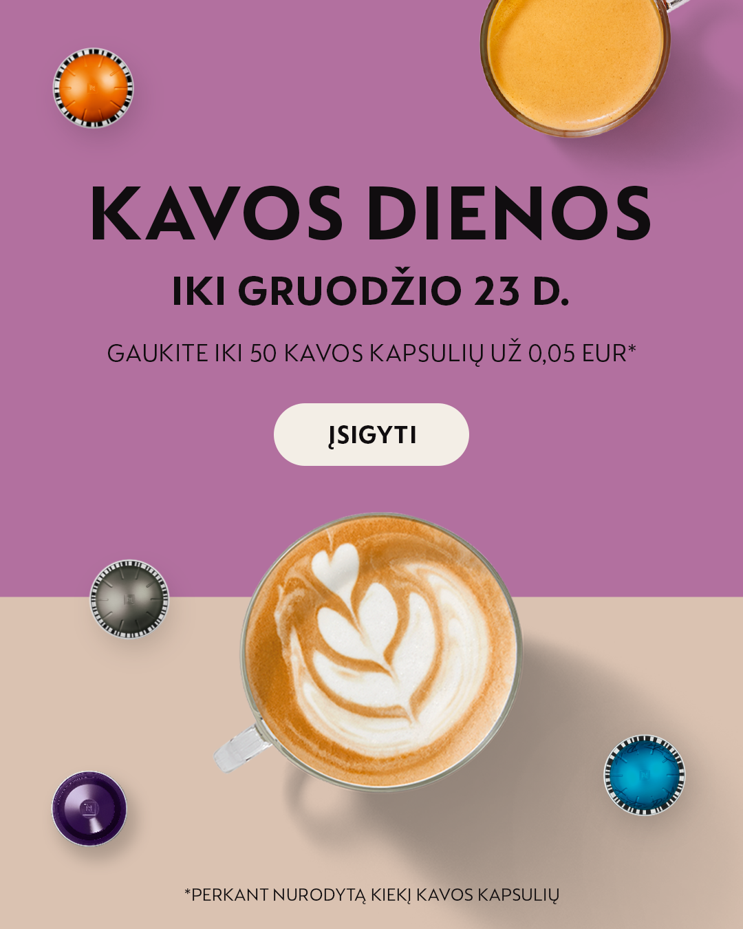 -40% KAVOS APARATUI VERTUO NEXT PERKANT 80 VERTUO KAPSULIŲ!