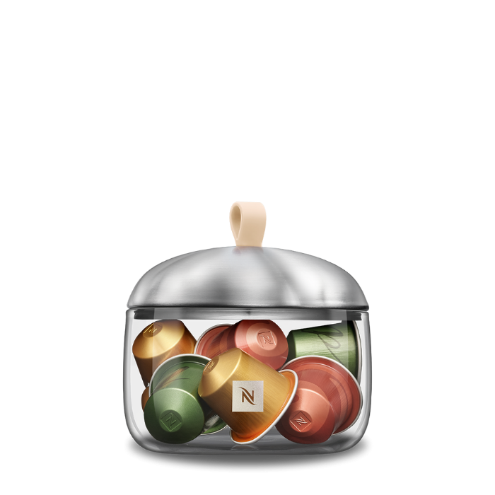 Pagamintas iš skaidraus stiklo, šis apvalus laikiklis, suteikia kapsulėms išskirtinumo.