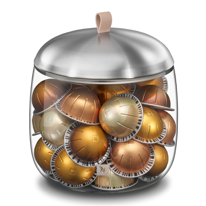 Permatomas kapsulių laikiklis suteiks gyvumo bet kuriai kapsulei ir bet kuriai virtuvei - nesvarbu ar joje vyrautų modernūs betono akcentai, ar senoviškų plytelių imitacijos. Suapvalintų formų, itin elegantiškam kapsulių laikikliui išskirtinumo suteikia plieno dangtelis su malonia prisilietimui silikonine rankenėle.